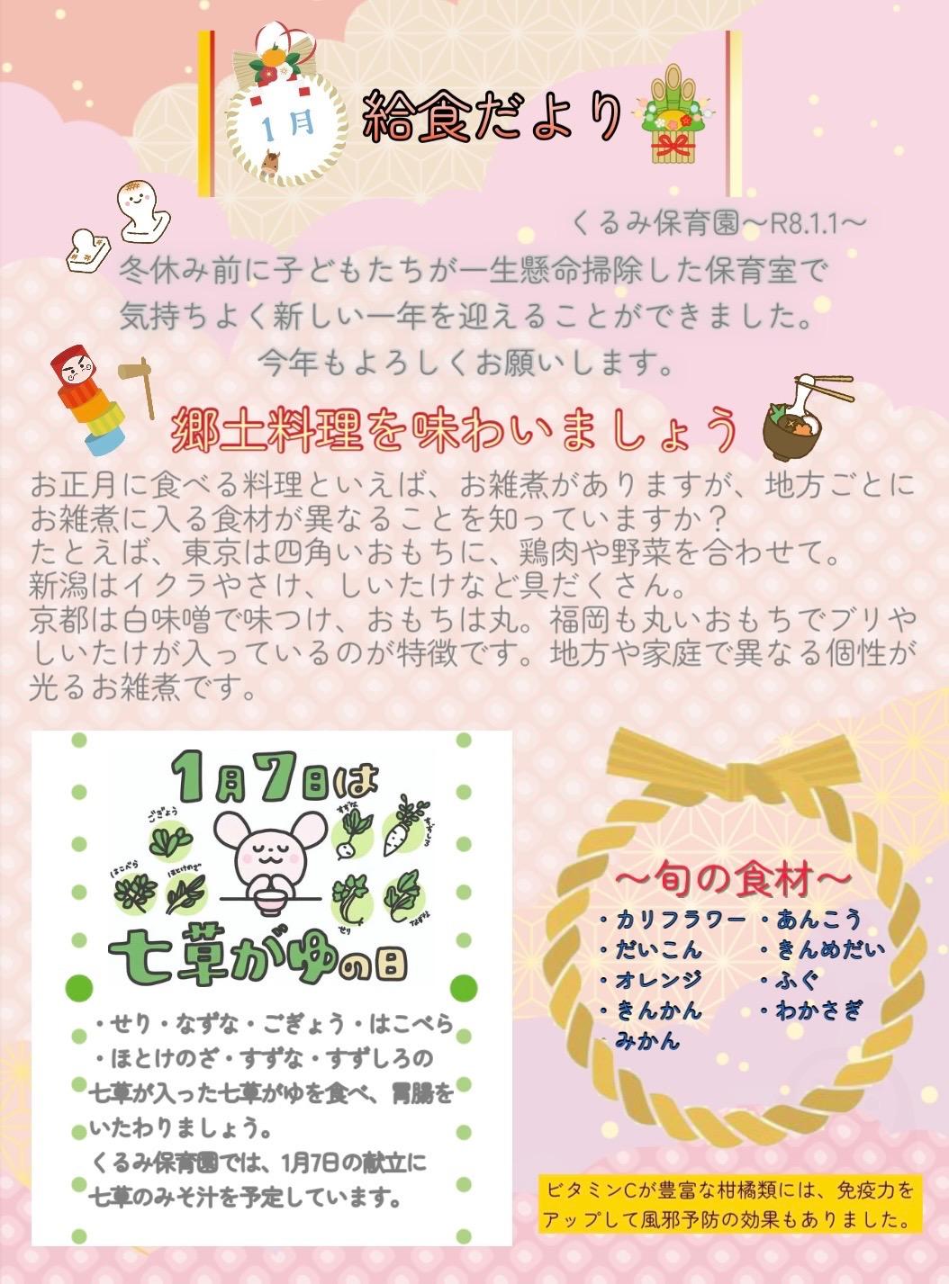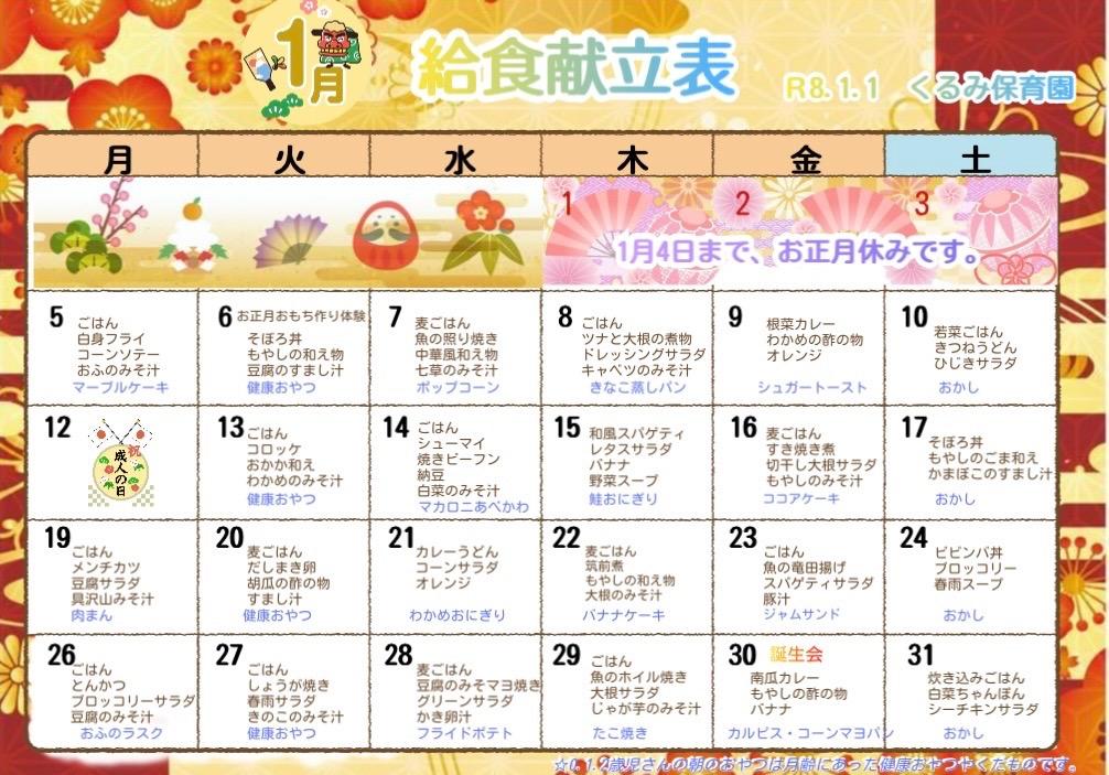 2026年1月4日(日)🎈🐤New🐤🎈 「1月の園だより、給食献立表、給食だより」 を更新しました😊 令和7年度 年間行事予定表をアップしました✨ |