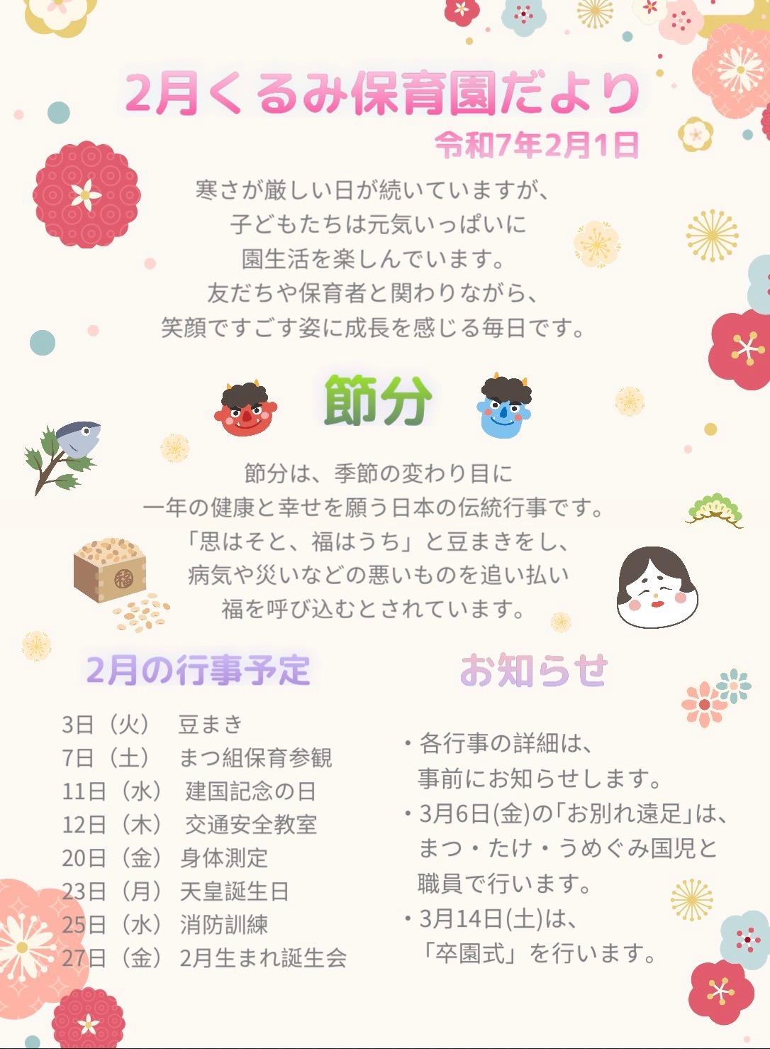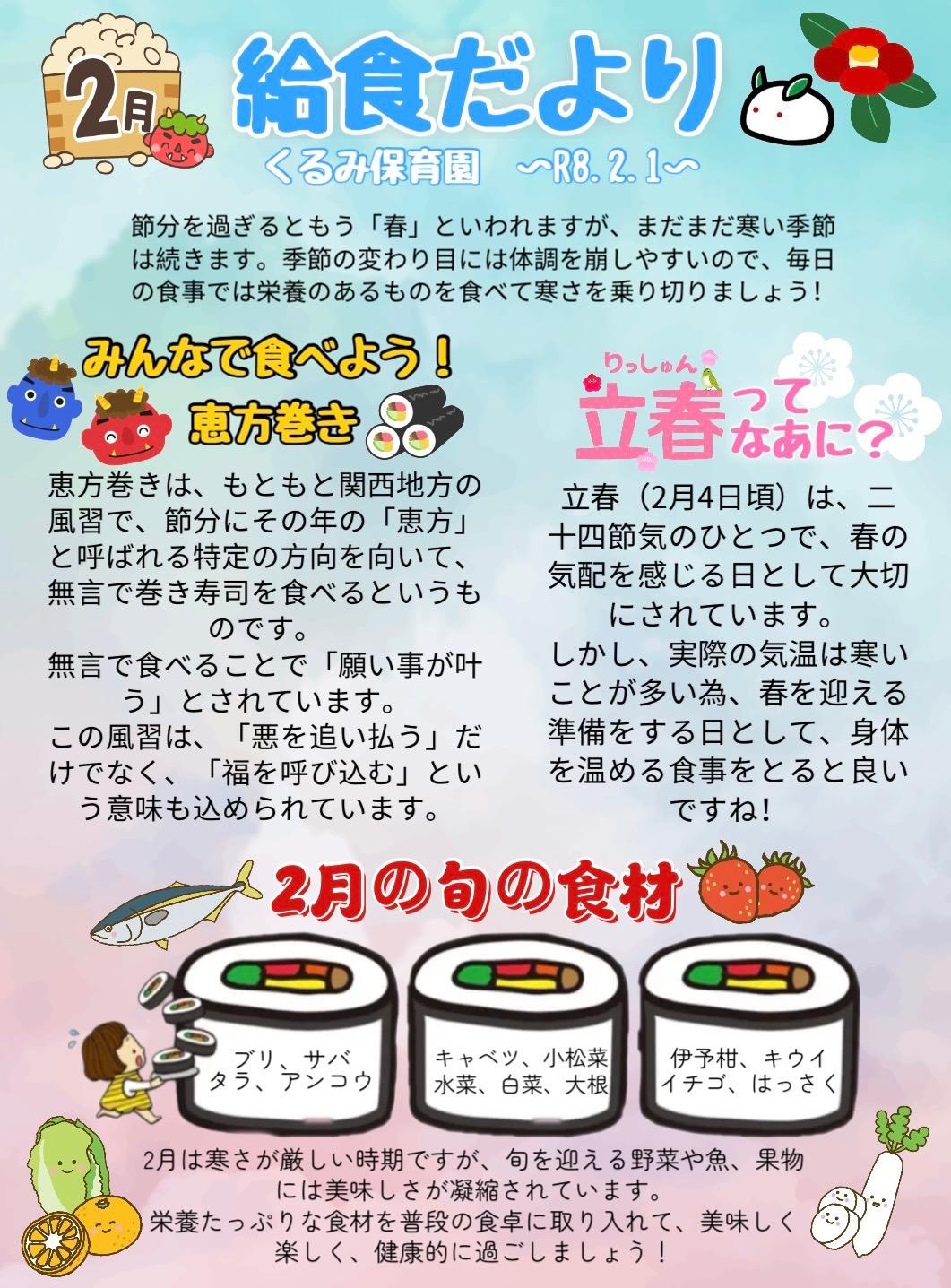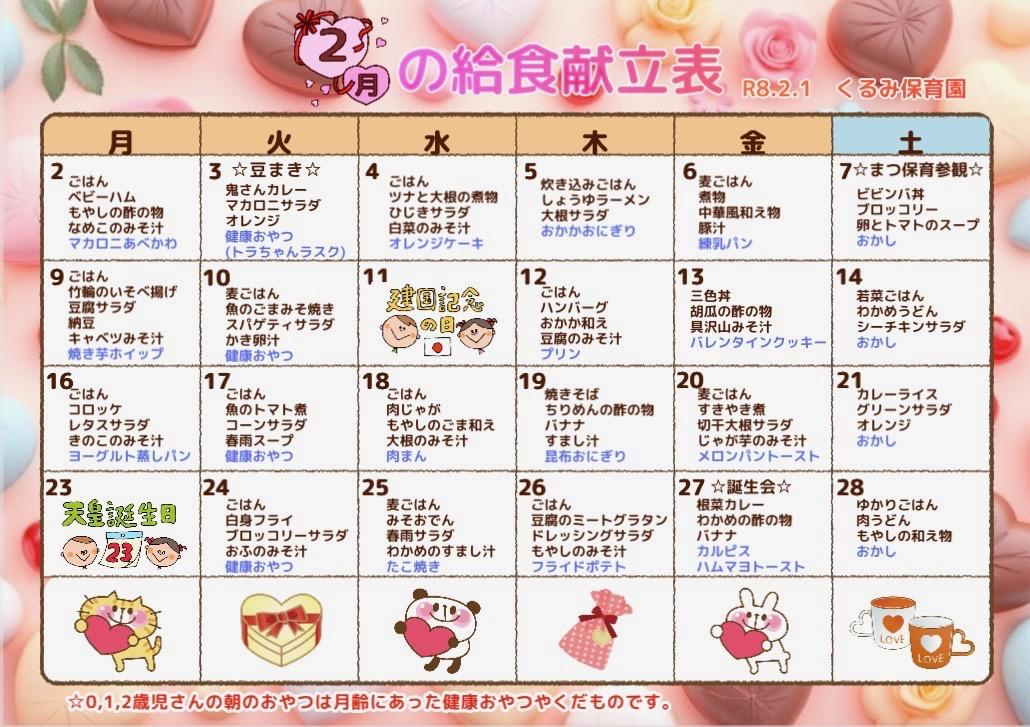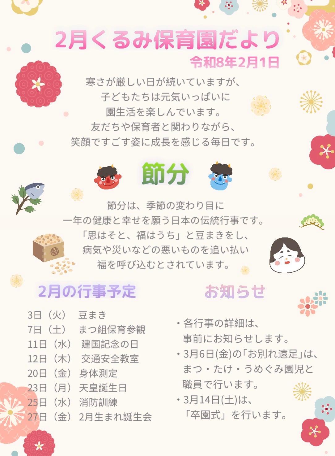 2026年2月1日(日)🎈🐤New🐤🎈 「2月の園だより、給食献立表、給食だより」 を更新しました😊 令和7年度 年間行事予定表をアップしました✨ |
